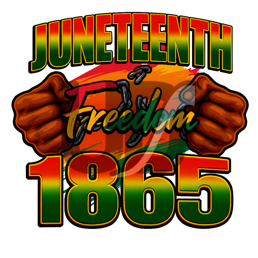 Celebrate freedom and heritage with this bold Juneteenth 1865 digital design. Featuring powerful imagery of broken chains, raised fists, and vibrant red, yellow, and green colors, this artwork honors the historic day of emancipation. Perfect for printing on shirts, posters, flags, and more.